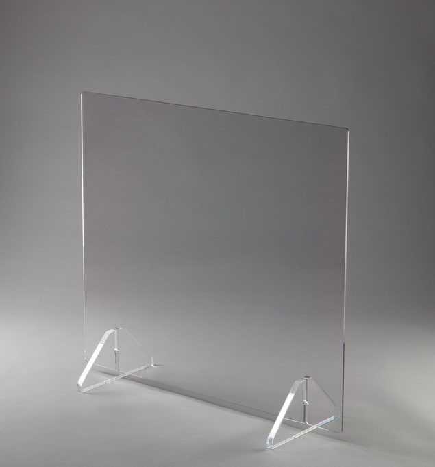 Unsere Infektionsschutzscheibe KELLCO® Steckmodell kann analog dem “Tischmodell” lose aufgestellt werden und bietet eine ausgezeichnete frontale Abschirmung. Alternativ kann sie auch zur Abschirmung als Arbeitsplatz Trennscheibe auf Schreibtischen oder an PC-Arbeitsplätzen genutzt werden. Für die Aufstellung müssen mindestens 25 cm freie Fläche zur Verfügung stehen. Die massiven polierten Füße haben eine Dicke von 15 mm und sind mit Gummistoppern versehen, was eine hervorragende Standsicherheit ergibt. Unterhalb der Scheibe steht ein 2 cm hoher Luftspalt als Kabeldurchführung zur Verfügung.